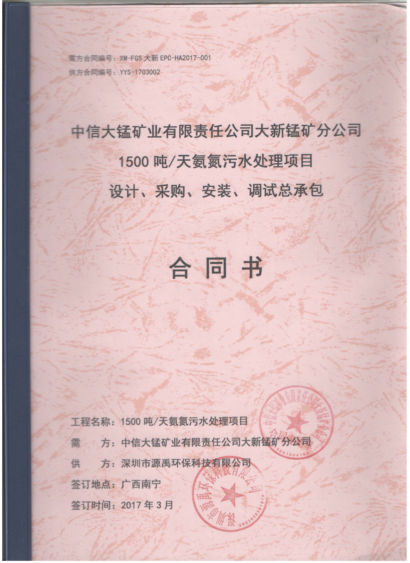熱烈祝賀中信大錳礦業(yè)有限責(zé)任公司1500噸/天氨氮污水處理資源化綜合利用項(xiàng)目與我公司正式簽約